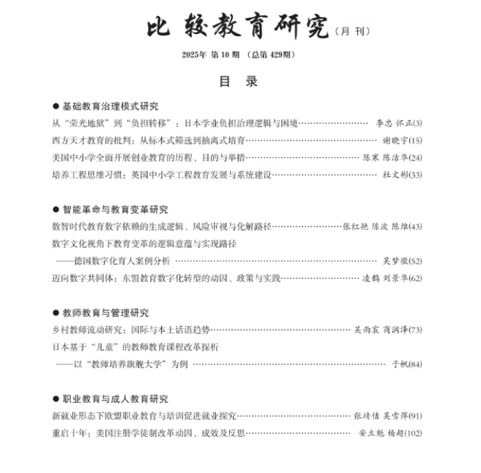 《比较教育研究》是我国比较教育研究领域的权威学术期刊,是国家社科基金资助期刊、CSSCI来源期刊、全国中文核心期刊,在我校认定为B2类级别期刊。学部师生该成果的发表,体现了其近几年在高等教育管理、职业教育国际比较研究领域的持续探索。