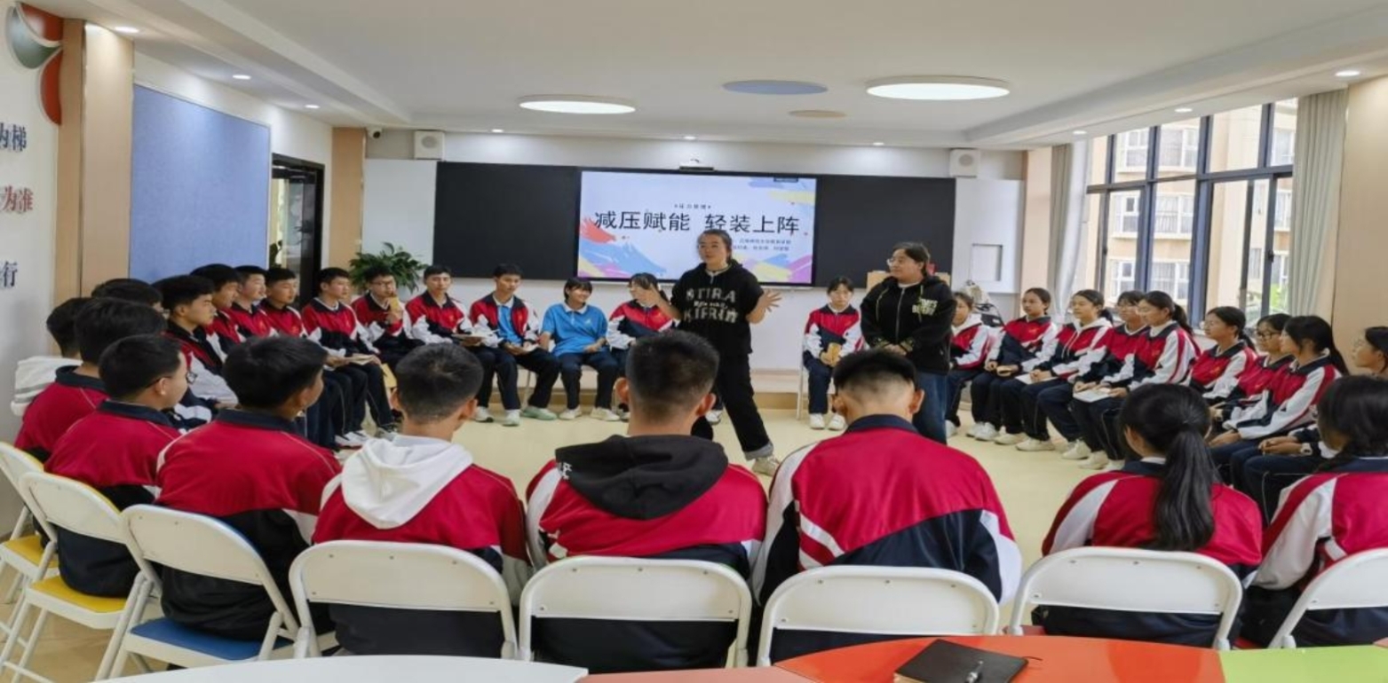 第一阶段:课堂示范。11月4日下午,培训在保山市未成年人成长指导中心正式启动。教育学部研究生问莹莹、任安琪带领39名高一学生以“减压赋能,轻装出行”为题开展团辅。在指导中心专业、温馨的环境中,两位同学通过一系列结构严谨兼顾趣味性的互动,引导高中生们学习压力管理技巧。