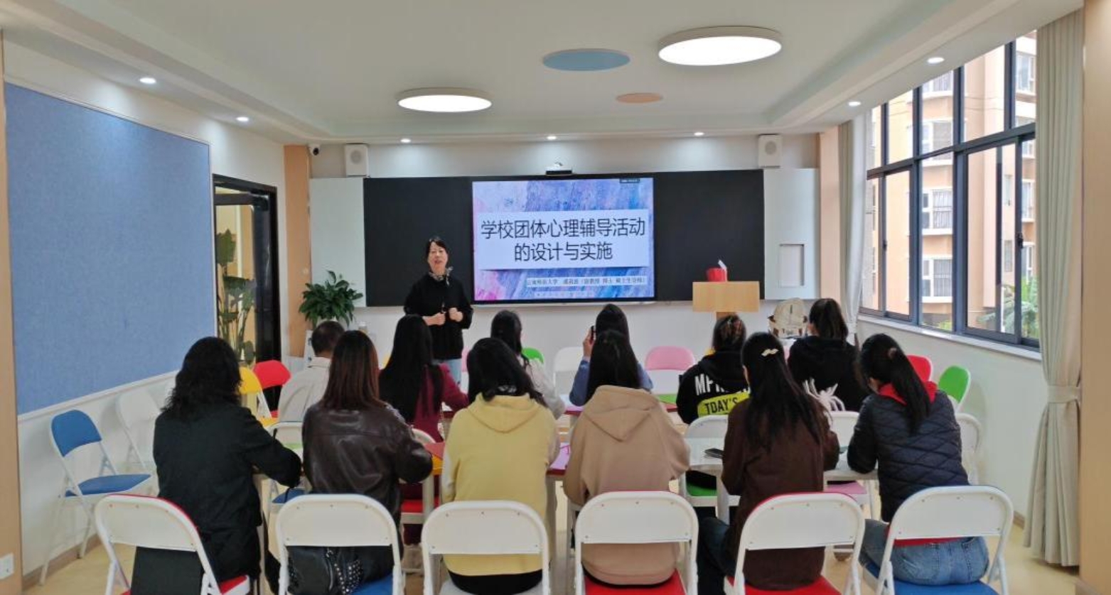 第二阶段:专题培训。盛莉波为志愿者们作了题为《学校团体心理辅导活动的设计和实施》的专题培训。她深入阐述了如何将团辅活动从游戏化的趣味体验,提升至科学化的专业干预,最终实现活动体验与心理知识的融会贯通,其核心始终是“以学生为本”。盛莉波结合示范课案例,对每个阶段的目标、带领者任务和注意事项进行了细致讲解,为志愿者们展现了清晰、可操作的团辅活动设计框架。