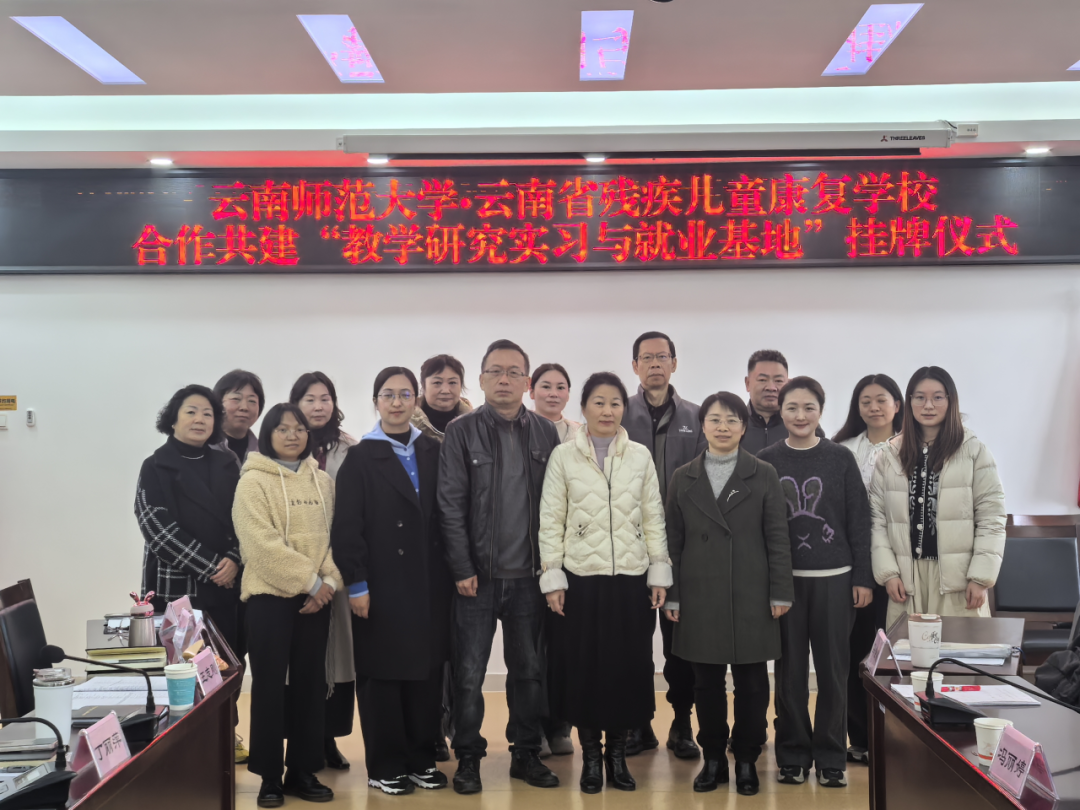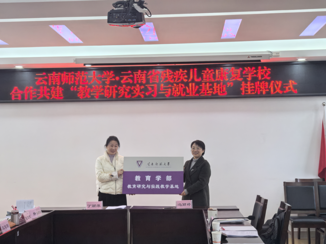 近日,教育学部与云南省残疾儿童康复学校合作共建的“教学研究实习与就业基地”挂牌仪式顺利举行。教育学部副主任冯丽婷、特殊教育专业负责人马金晶、专业教师杨斌,以及云南省残疾儿童康复学校校长丁丽萍等学校领导与教师代表共同参加了仪式。