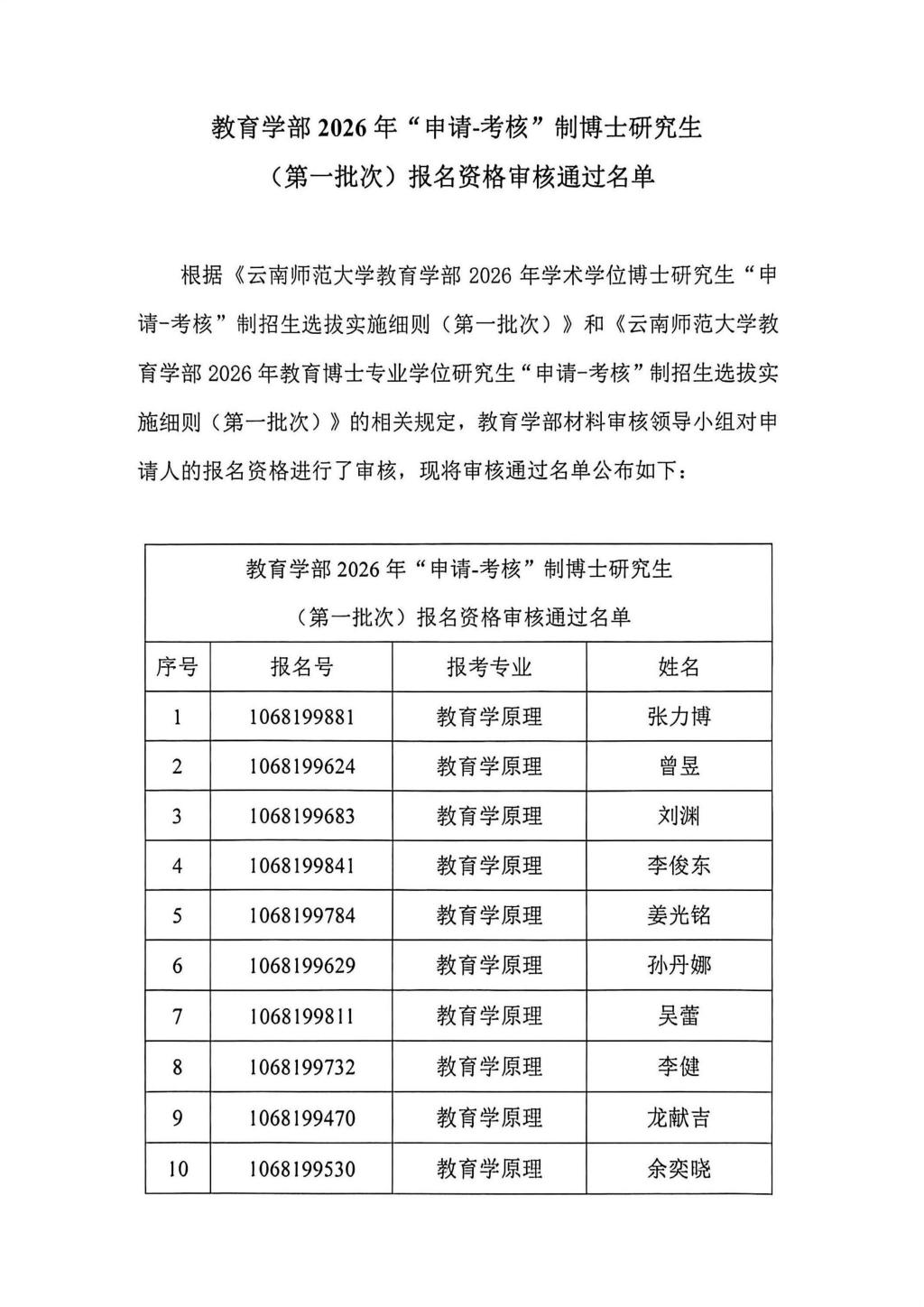 教育学部2026年“申请-考核”制博士研究生(第一批次)报名资格审核通过名单.pdf