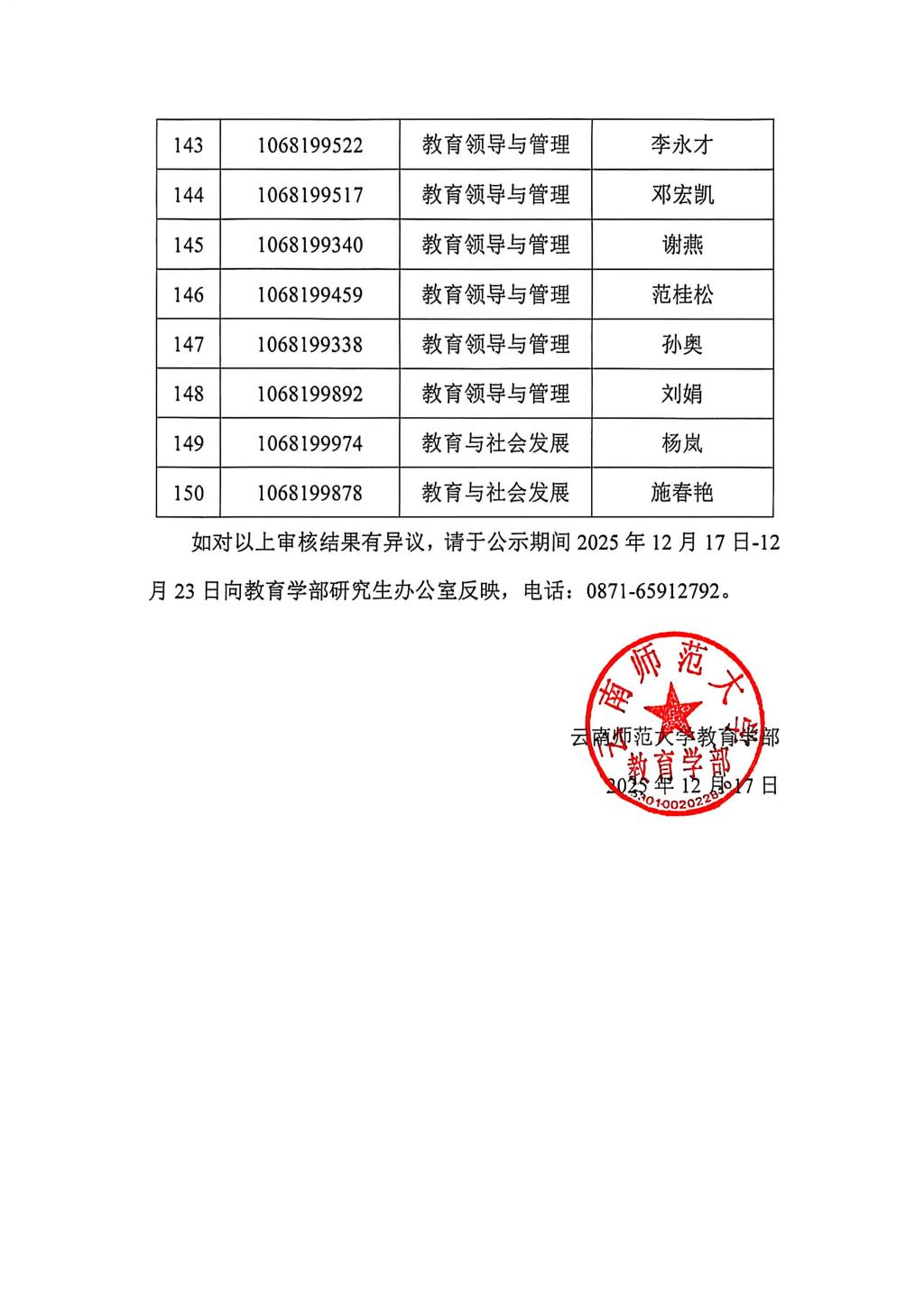 教育学部2026年“申请-考核”制博士研究生(第一批次)报名资格审核通过名单