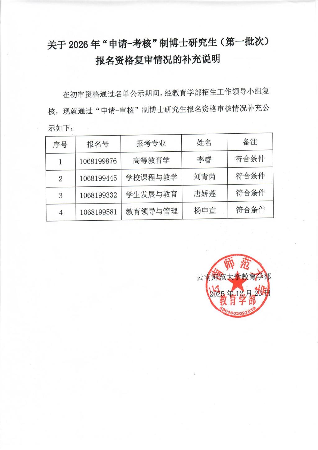 教育学部2026年“申请-考核”制博士研究生(第一批次)报名资格审核通过名单