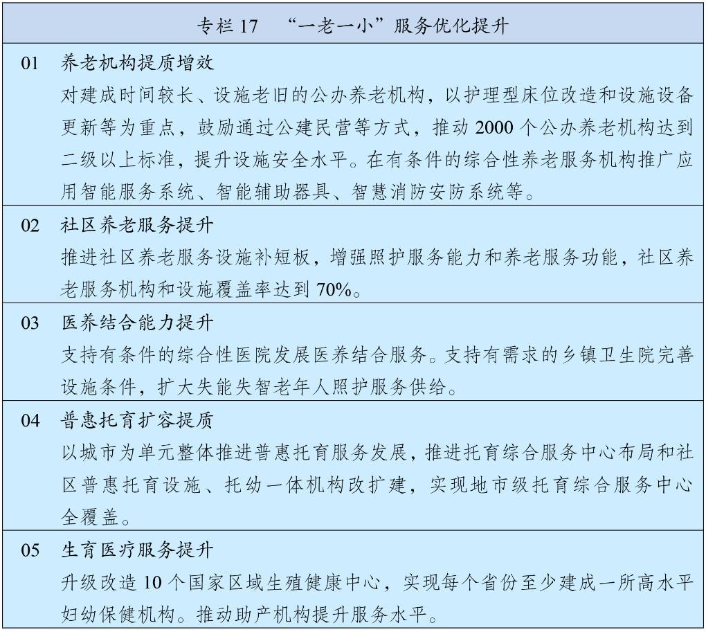 坚持儿童优先发展,切实保障儿童生存权、发展权、受保护权和参与权。推进儿童近视、超重肥胖和孤独症等早筛查早干预。提高儿童医疗保健服务水平,丰富儿童用药品种。加强困境儿童关爱服务,推进流动儿童、留守儿童分类帮扶,有效提升福利保障水平。完善儿童早期发展服务。制定实施儿童伤害防控行动计划,强化未成年人违法犯罪预防和治理,有效防治学生欺凌。加强未成年人网络保护,拓展网络育人空间和阵地。推进儿童友好建设,营造关心关爱下一代的社会环境。