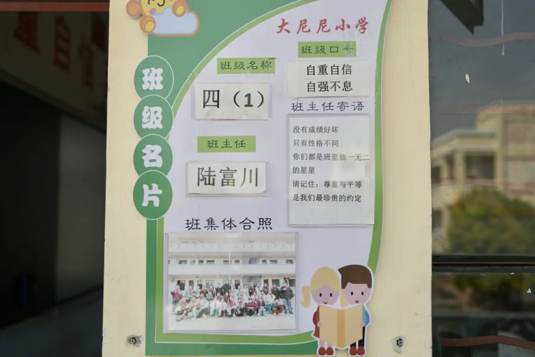 走进大尼尼小学四(1)班教室,这句写在陆富川班级门口的寄语,总会让人心头一暖。